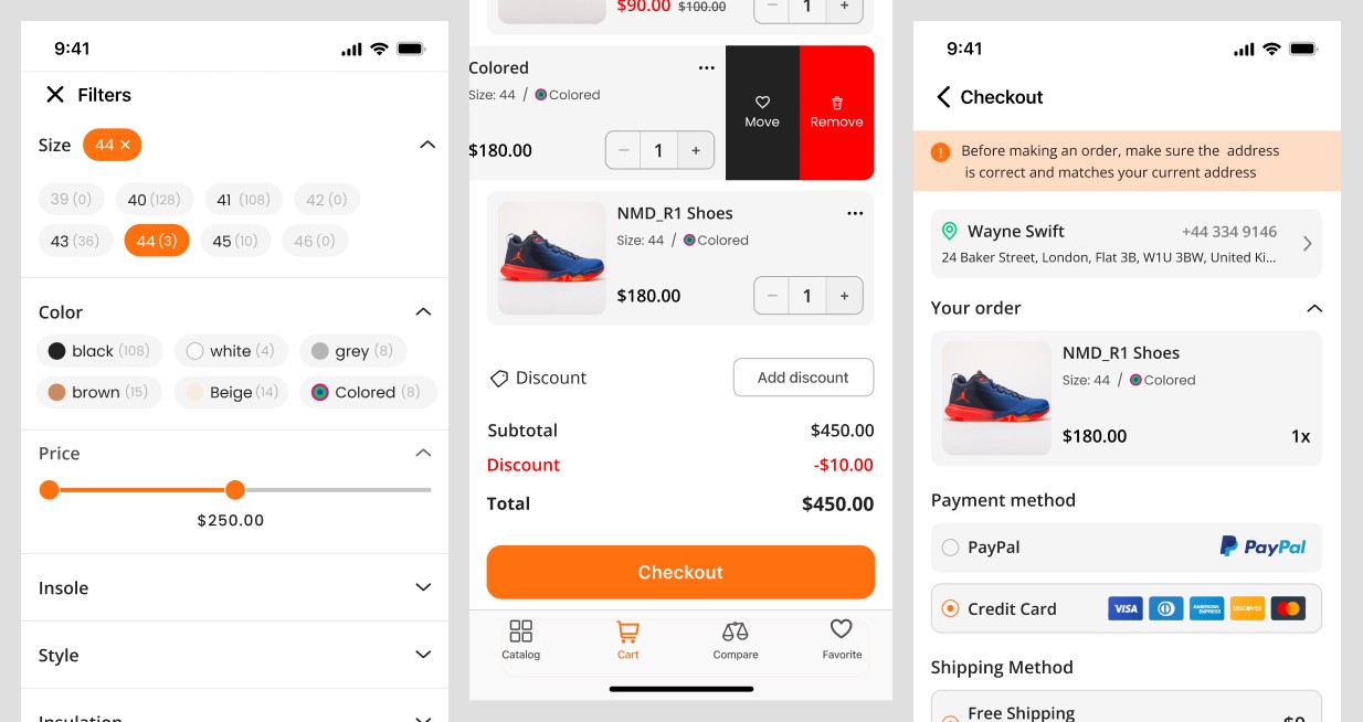My role: I redesigned and optimized key screens - product catalog, product page, filters, checkout flow, reviews, and personal account - to create a smooth and intuitive shopping experience. I also improved the overall UI and UX while maintaining consistency with the existing design system, ensuring users could navigate the app easily and the development process remained efficient.