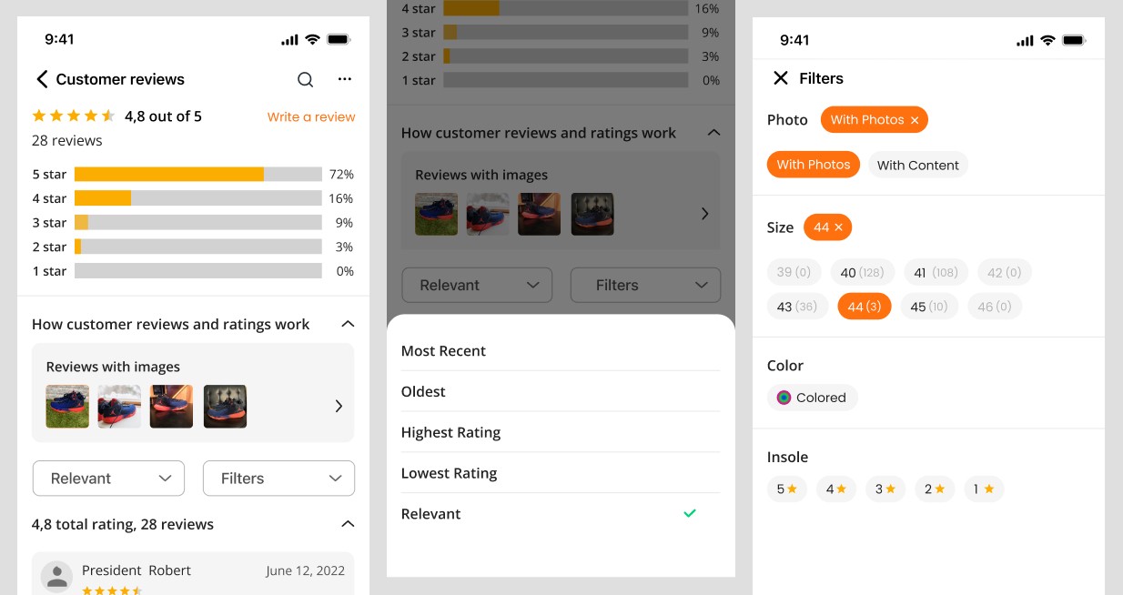 Improving product pages, filters, and reviews for clarity and usability.