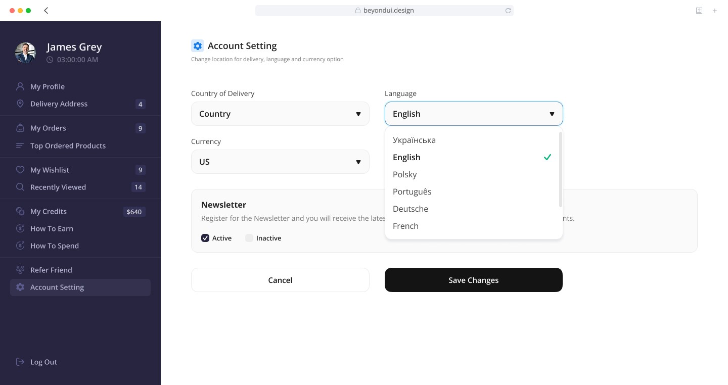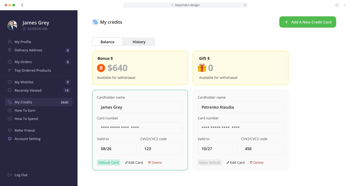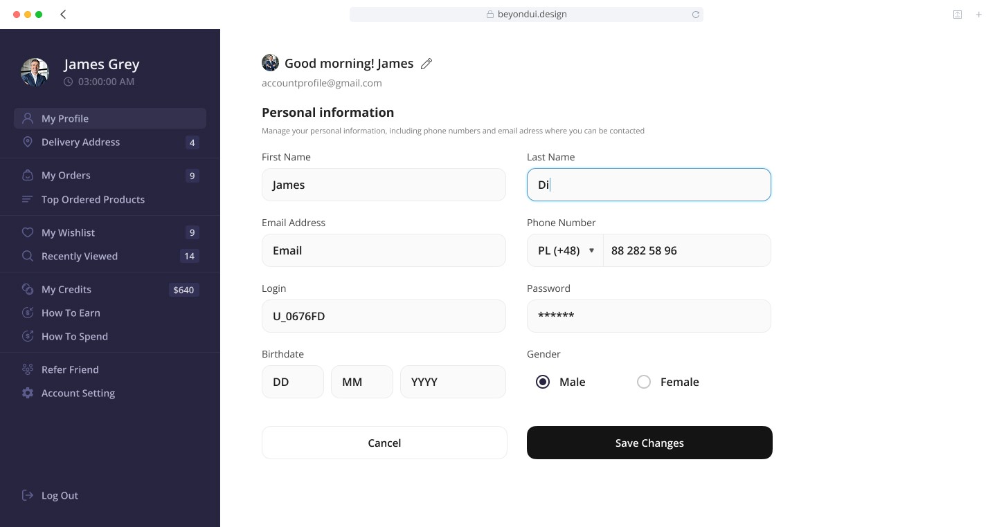 My goal was to design a structured, intuitive, and visually clean personal cabinet that helps users easily manage their profile, orders, payments, and preferences.